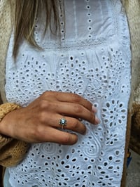 Anillo realizado en plata de 925 milésimas y circonita tallada de color azul o blanco.